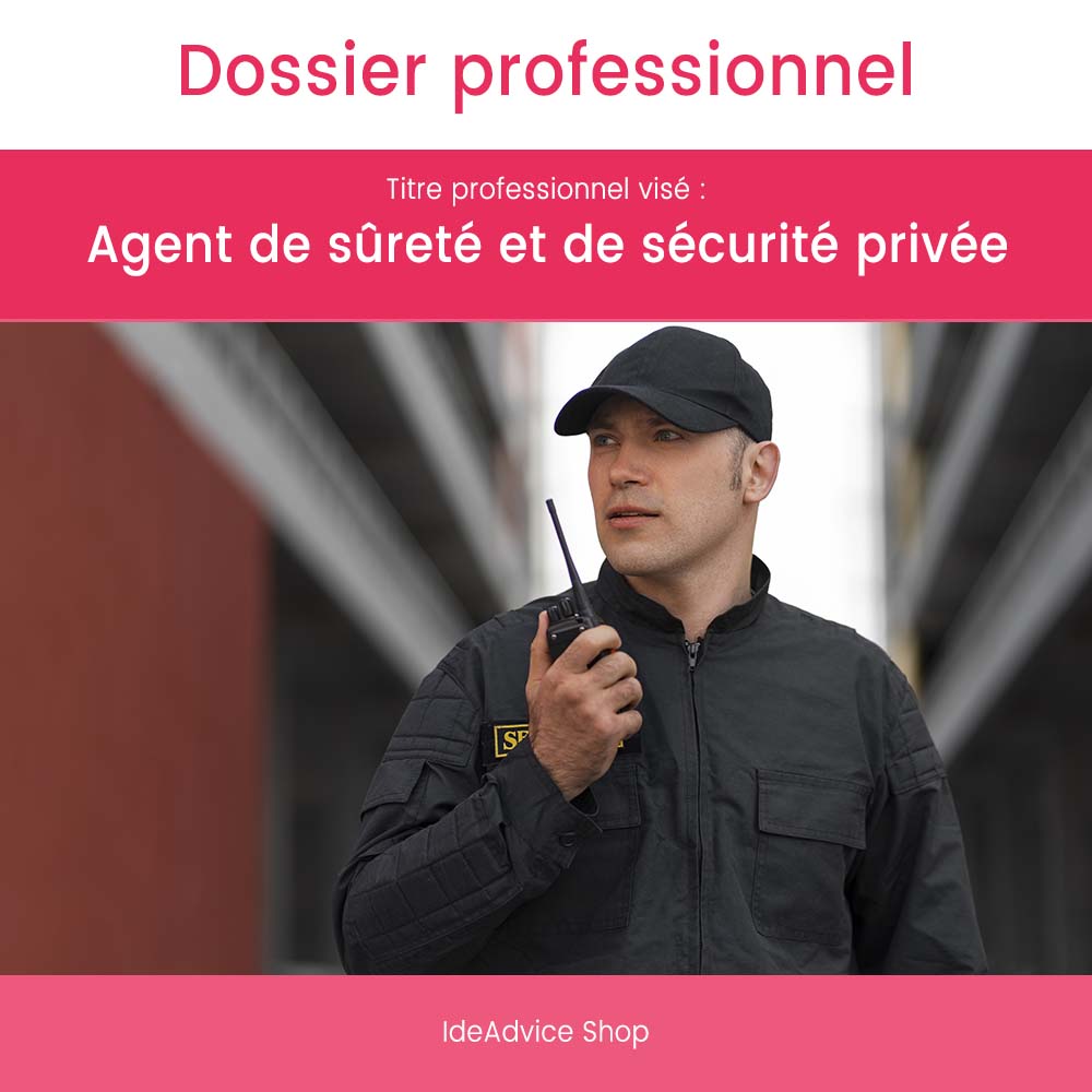 Ce dossier professionnel est le support idéal pour les stagiaires de la formation Agent de sûreté et de sécurité privée qui préparent les épreuves du Titre Professionnel. Le dossier professionnel fait partie intégrante du processus de certification. Il est consulté par les membres du jury professionnel durant la session d’examen, c’est pourquoi il est important de soigner la présentation et la rédaction de votre dossier.