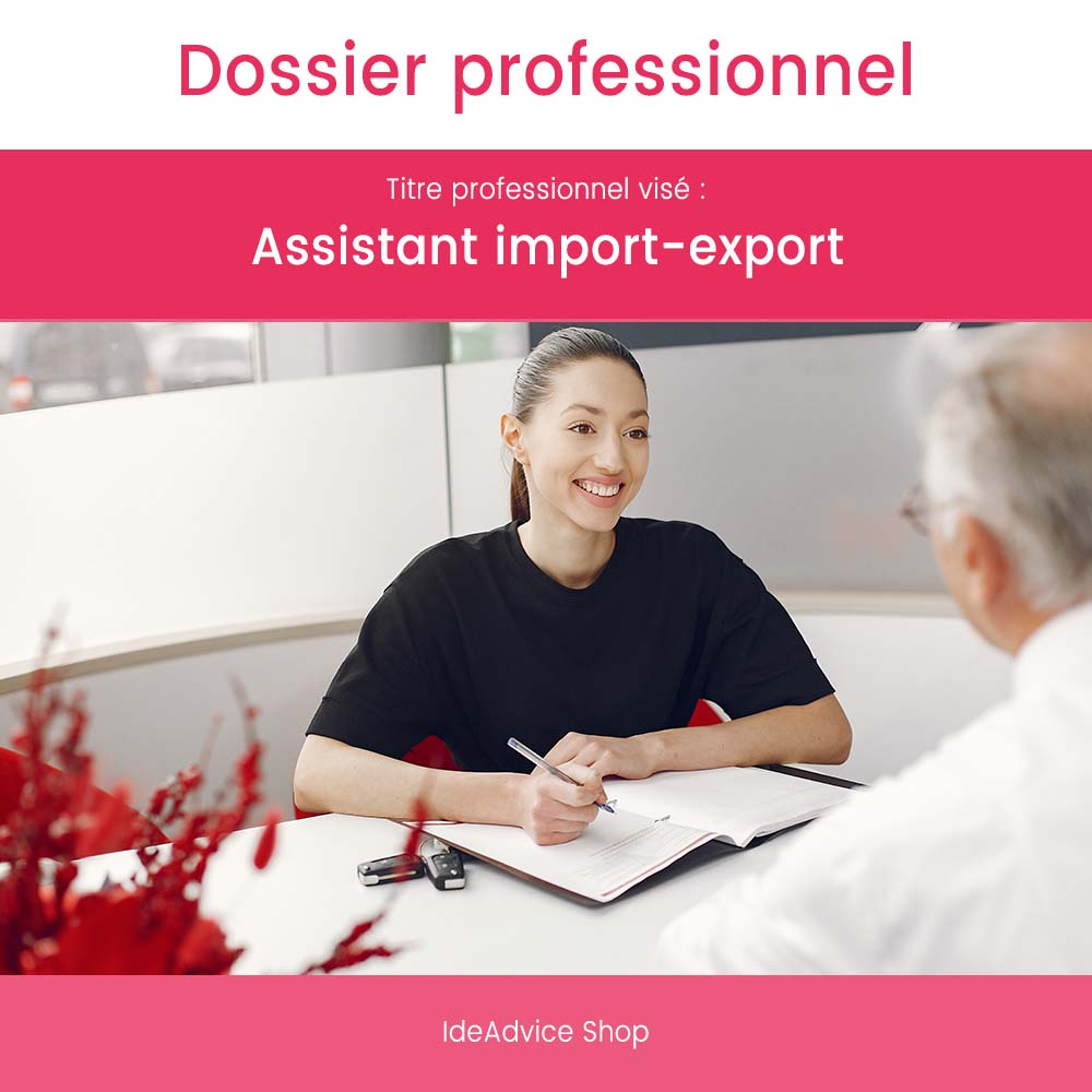 Ce dossier professionnel est le support idéal pour les stagiaires de la formation Assistant import-export qui préparent les épreuves du Titre Professionnel. Le dossier professionnel fait partie intégrante du processus de certification. Il est consulté par les membres du jury professionnel durant la session d’examen, c’est pourquoi il est important de soigner la présentation et la rédaction de votre dossier.